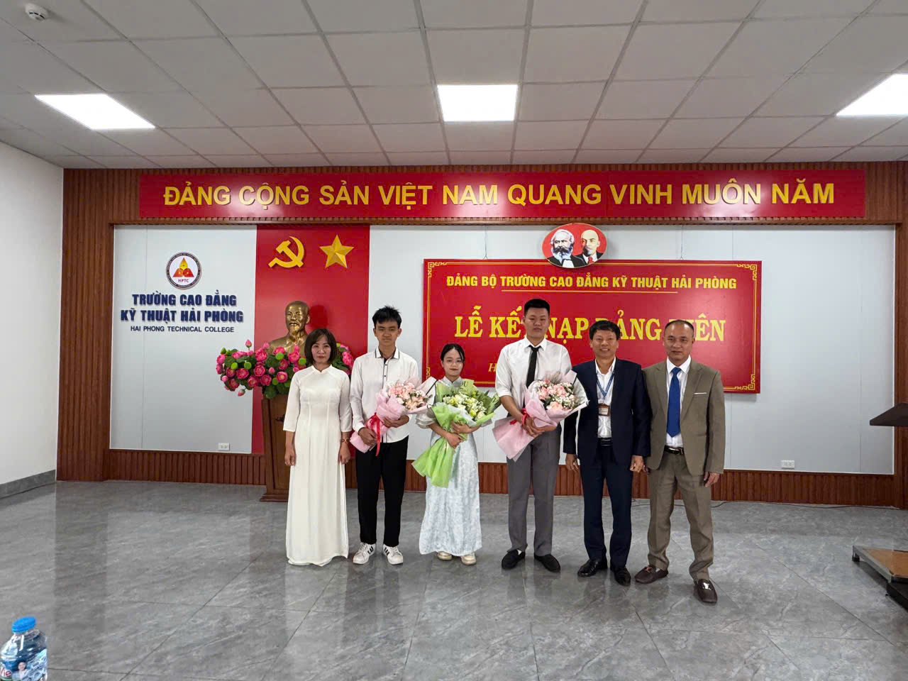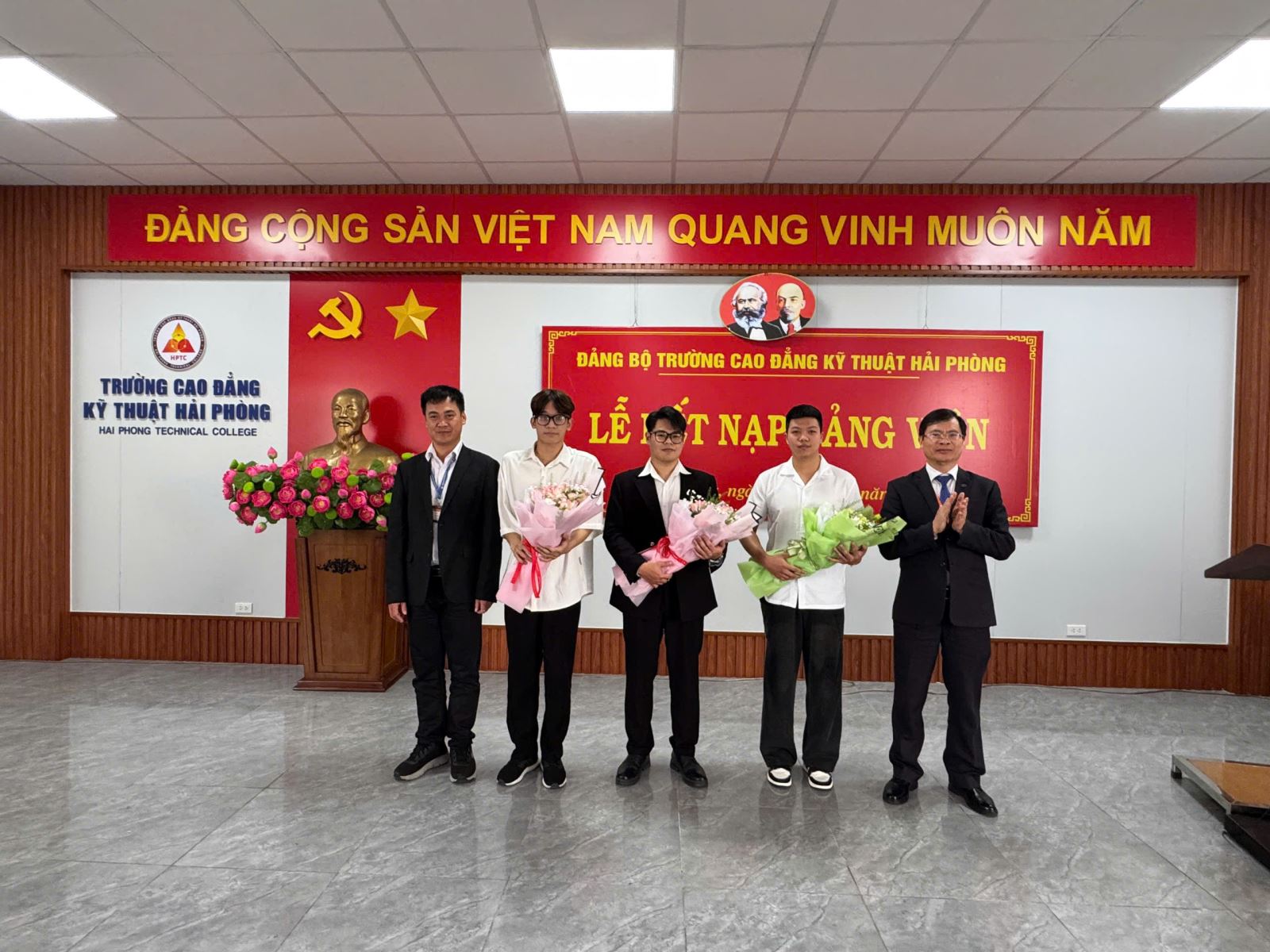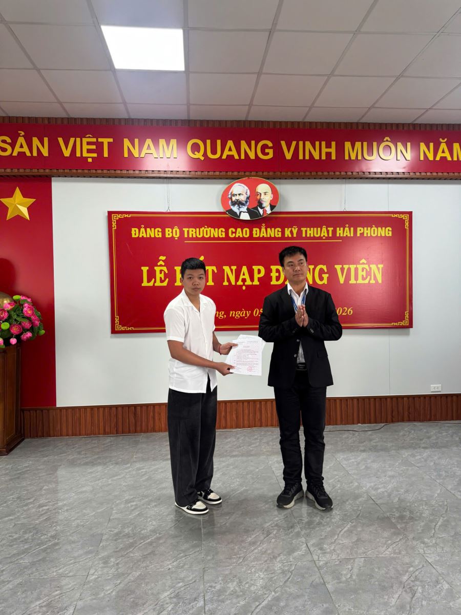 Chiều ngày 05/03/2026 Trường Cao đẳng Kỹ thuật Hải Phòng long trọng tổ chức lễ kết nạp Đảng viên mới. Buổi lễ được tổ chức trang trọng, đúng quy trình, thủ tục theo Điều lệ Đảng, là một sự kiện chính trị có ý nghĩa sâu sắc đối với mỗi cá nhân được kết nạp, đồng thời thể hiện sự quan tâm của Đảng ủy và Nhà trường đối với công tác phát triển Đảng trong sinh viên.